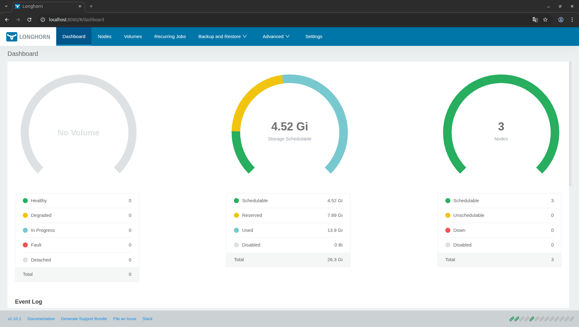 kubectl -n longhorn-system port-forward svc/longhorn-frontend 8080:80Access in the browser at http://localhost:8080 .